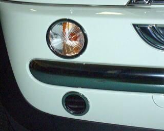 フォグランプ、パークランプ、リバースランプのクロームリングセット。 両面テープで貼り付けるだけの簡単装着。 ONE、COOPER用エアロダイナミックには取り付け出来ません。 05モデル不可!